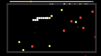 - Green Squares (they add to the Snake, make it faster, and shoot)